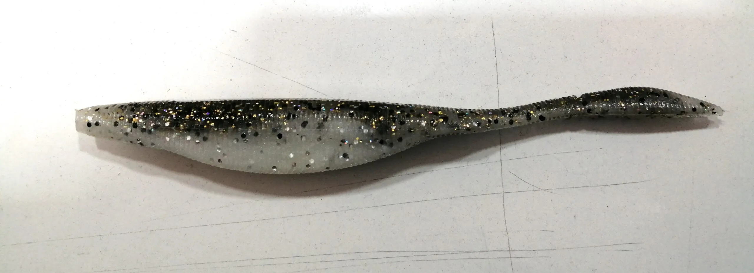 Este señuelo esta fabriacado con un plasticol especial de dureza media, y contiene sal, esto hace que el pez lo tenga mas tiempo en la boca.
