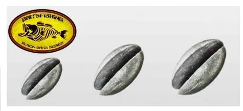 Plomos de split shot de forma ovalada, que tiene mejor caída que el redondo y se engancha menos.