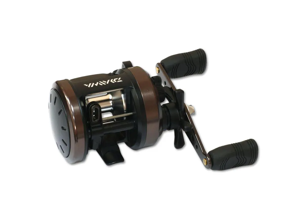 Carrete de perfil redondo que viene preparado para pescar con trenzado PE, ideal para grandes cebos y pikis, este carrete dado su ratio bajo se hace ideal para pescar con crankbaits y grandes cebos. Es de color rojo y negro, tiene un bastidor de aluminio Super Metal Body y un doble puño redondo EVA para un mejor agarre.