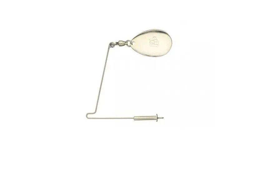 Los J-Spinner Fish Arrow son completamente libres de óxido y están equipados con cuchillas Colorado en plata u oro. Entre la cuchilla y la varilla de metal hay un pivote al que se unen la varilla y la cuchilla giratoria con 2 anillos elásticos. Los anillos elásticos se pueden abrir fácilmente con cualquier alicate para anillos elásticos disponibles en el mercado y, por lo tanto, brindan la opción de cambiar la clavija giratoria según su gusto. En el alambre de metal precioso extremadamente flexible de 40 mm, la hoja, el pivote y los anillos de presión se unen a un ojal soldado sin enredos. El único punto de venta, el ojal para el punto de mordida, se encuentra a 38 mm del pliegue.