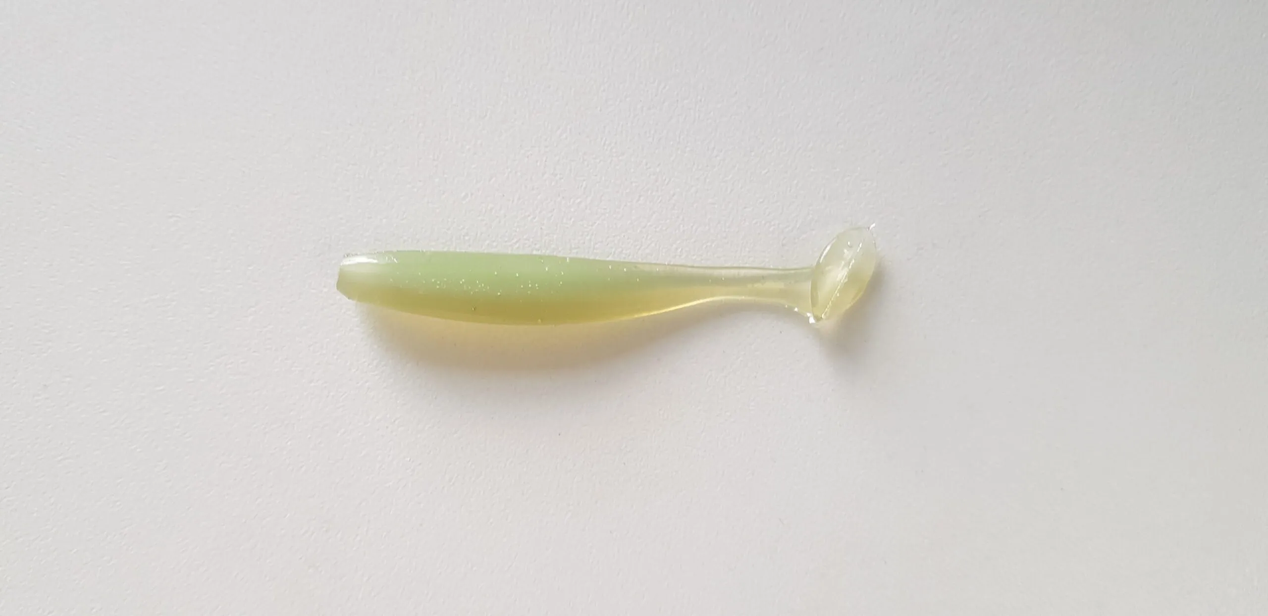 Es un pez de vinilo con cuerpo delgado y liso dotado de una cola plana que emite una vibración que atrae mucho mas a los peces. Además, hace que se mueva mejor ya sea con recogidas lineales o tirones largos o cortos.