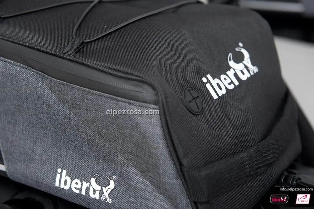Fabricados en tela impermeable, con cremalleras impermeables, tienen unas dimensiones de 42cm x 20cm x 16cm y se fijan a nuestro Iberux mediante dos ganchos de zafado rápido y velcros.