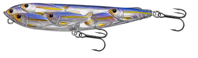 Imita a dos pequeños grupos de pequeños cebos en la superficie que huyen de los peces. Fácil de ‘pasear al perro’ y escupir la acción. El arreglo del cebo en la línea ofrece un equilibrio perfecto de destello para condiciones de agua clara.