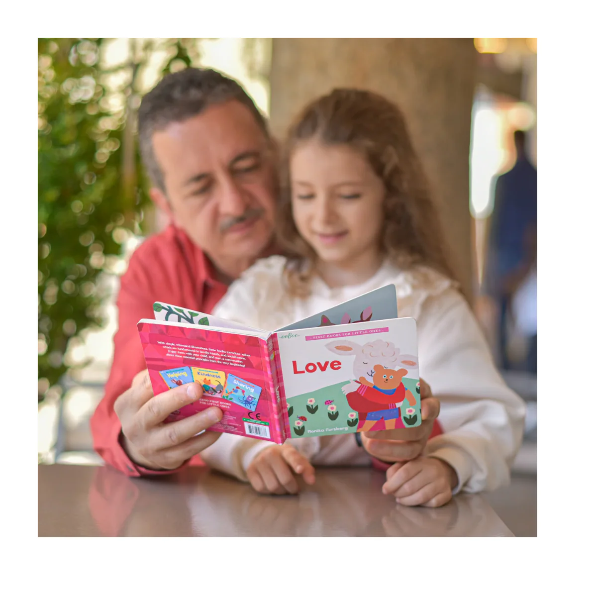 Estos pequeños libros son una primera y preciosa forma de introducir a los niños en valores fundamentales como el amor, la amabilidad, la ayuda mutua y el compartir. Con ilustraciones coloridas y llenas de encanto de la reconocida artista Monika Forsberg, cada libro invita a conversar sobre la importancia de una buena convivencia en familia, con amigos y en la comunidad.