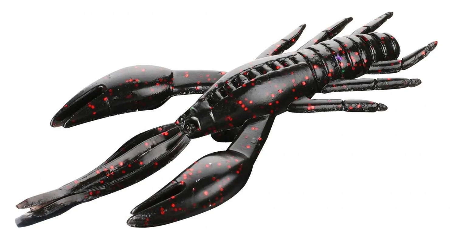 Es una imitación a cangrejo, uno de los favoritos apetitos de los peces, gracias a sus patas flexibles y alicates usando impresión en los depredadores, dependiendo de la técnica de pesca que utilicemos. El vinilo esta cubierto por sal y tiene un intenso olor a camarón, lo que hace que el cebo lo muerda y no lo expulse de la boca.
