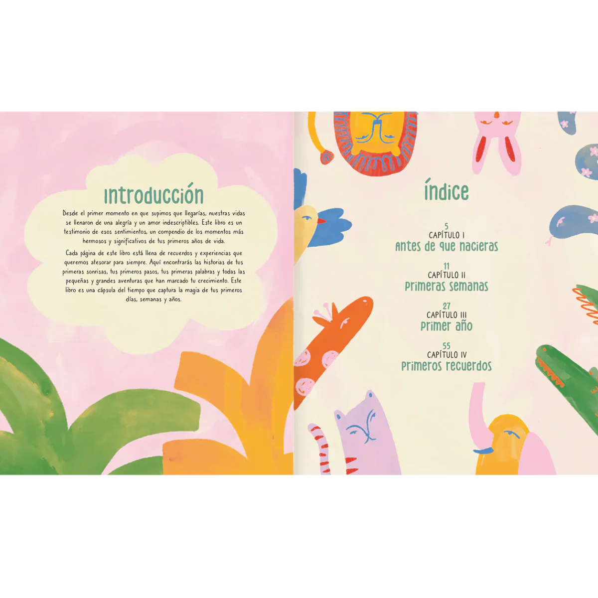 Este libro fue creado para guardar los momentos más especiales de tu hijo o hija, desde el nacimiento hasta sus primeros grandes logros. Cada página invita a registrar detalles, emociones y anécdotas que marcarán los primeros meses y años de su vida.