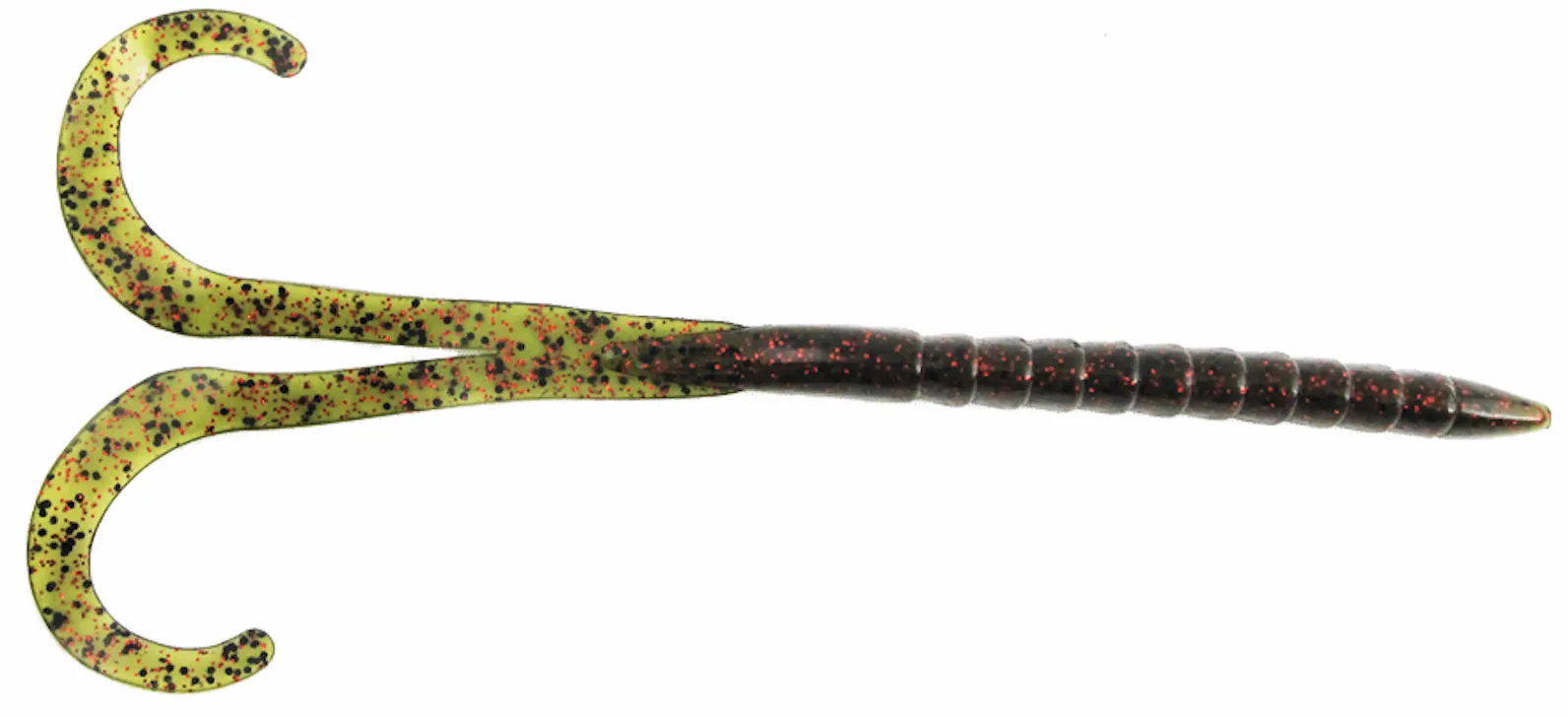 Es un vinilo tipo gusano con cola grande. Su doble cola de cinta única produce una acción letal con la más mínima contracción o sus costillas de agarre de misiles permiten excelentes conjuntos de ganchos. Para usarlo con plataformas como; Texas, Carolina y aplicaciones de cabeza temblorosa grandes.