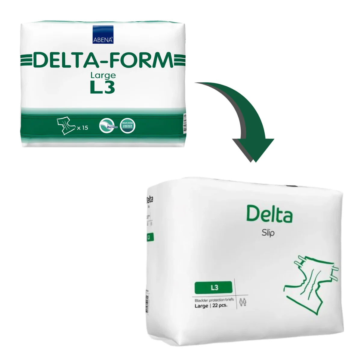 El Delta Slip L3 de Abena es la versión renovada del clásico DELTAFORM L3, que anteriormente incluía 15 unidades por paquete y ahora se presenta en un formato más conveniente de 22 unidades. Esta actualización ofrece mayor rendimiento y economía, manteniendo la calidad y confianza que caracteriza a la marca.
