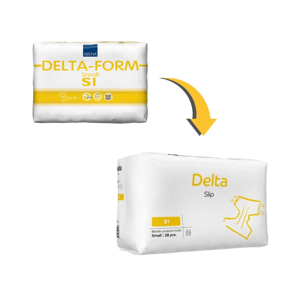 El Abena Delta Slip S1 es la nueva presentación del conocido Deltaform S1, ahora con un formato más conveniente de 28 unidades por paquete (anteriormente 20), pero con la misma calidad, absorción y confianza que han hecho de Abena una de las marcas líderes en el manejo de la incontinencia.