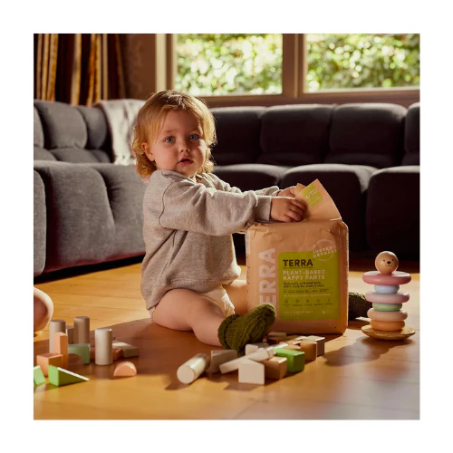 En el proceso de aprendizaje y autonomía de los niños, los pants se convierten en un gran aliado. Por esto, la línea de pants Terra, fabricados en un 85% a base de plantas, son los compañeros perfectos para esta etapa.