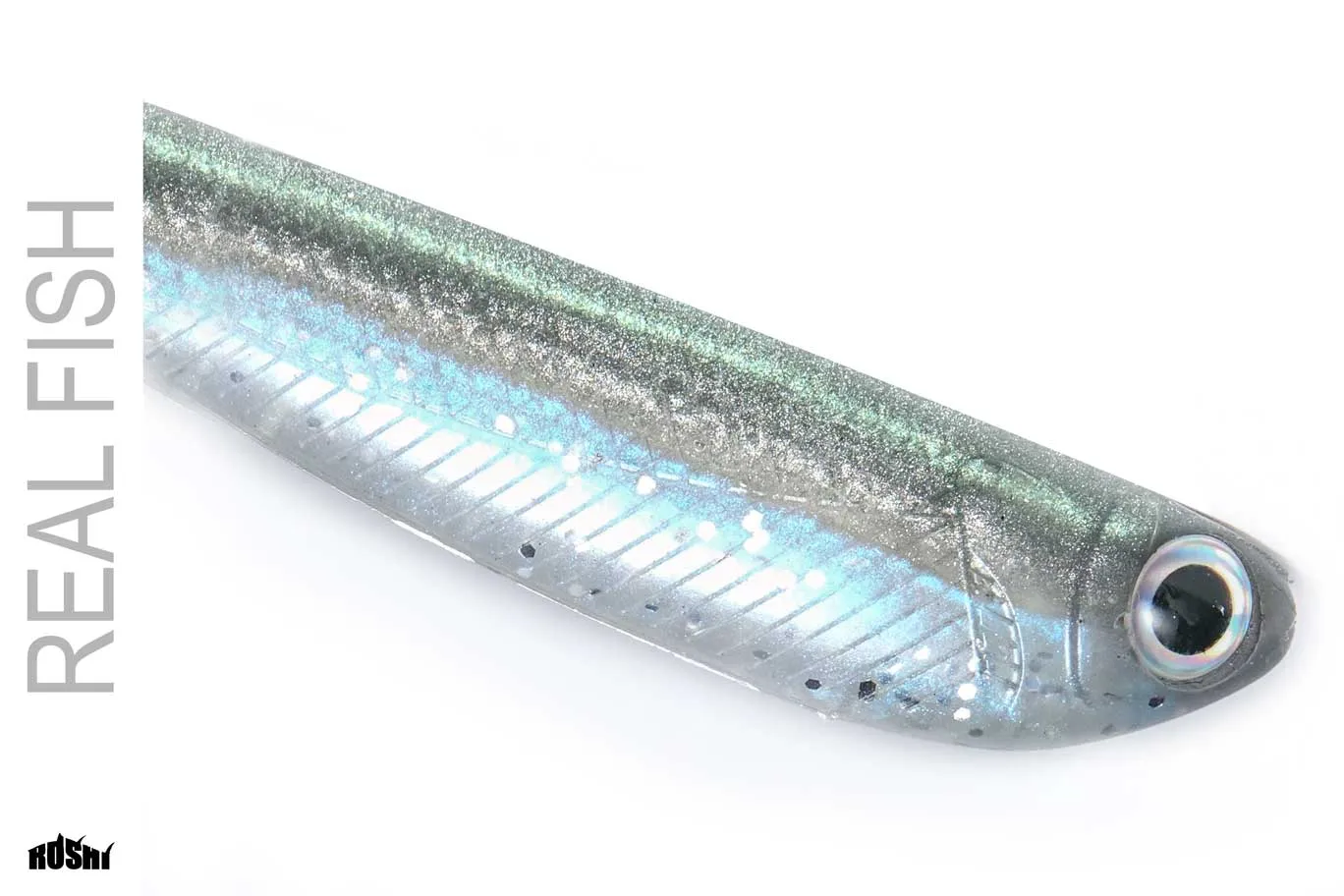- Diseño; cuerpo escamado, agallas, ojos 3D, barriga abierta, y el sello de calidad, en el plano de la cola hemos añadido nuestro logo ROSHI