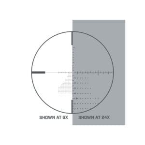 Dotado con la retícula Deploy MIL iluminada en primer plano focal (FFP) que lo hace prefecto para disparos a larga distancia y torretas sencillas de 10 puntos de rotación (10 MIL). El tubo de 30mm. ofrece robustez y un amplio margen de corrección de hasta 18 MIL tanto en altura como en deriva ideal para disparos de hasta 1.000 metros. El ajuste de paralaje lateral de 10 yardas al infinito, ofrece un enfoque rápido y preciso.